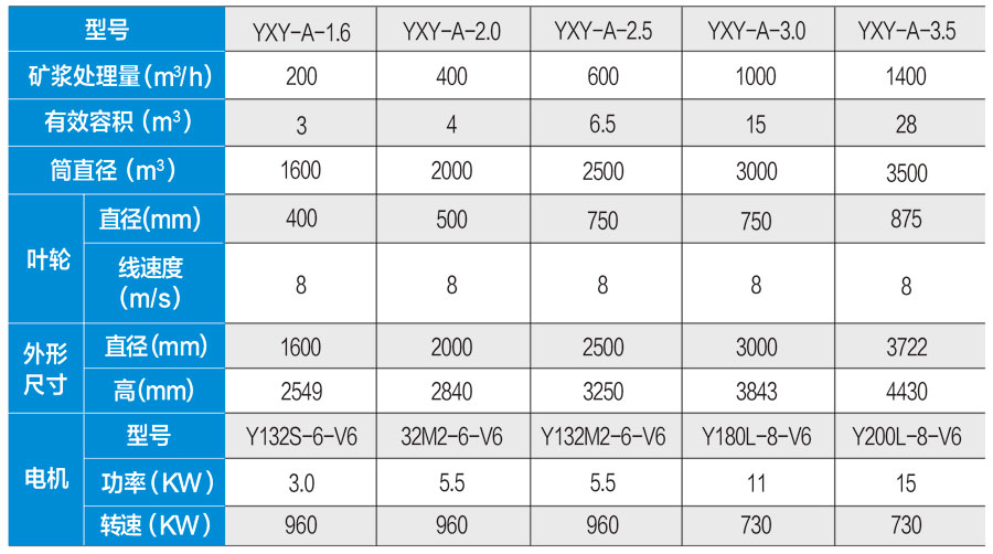 YXY-A系列機械攪拌式浮選機技術(shù)參數(shù)表