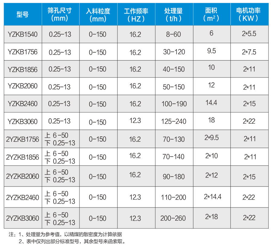 YZKB/2YZKB系列直線振動篩技術(shù)參數(shù)表