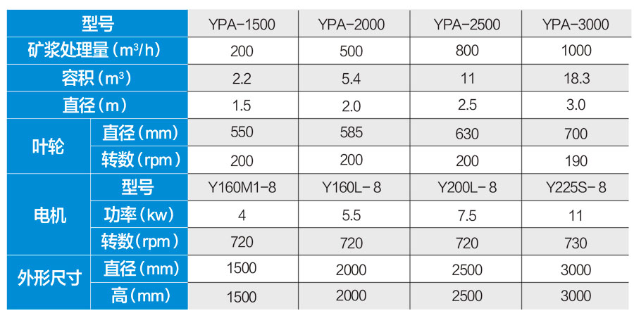YPA系列漿體攪拌桶技術(shù)參數(shù)表