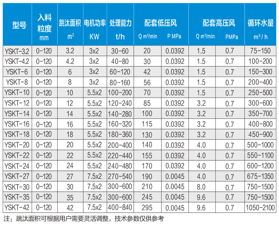 兩段跳汰機主要用于易選、中等可選性的原煤洗選。同重介旋流器相比,工藝流程簡單,操作維護方便,不需添加磁鐵粉,產品指標和結構調整靈活便捷。建廠投資、生產成本等均比重介低。同干選相比,分選精度高,分選下限低,對原煤的水分和粒度要求低。
